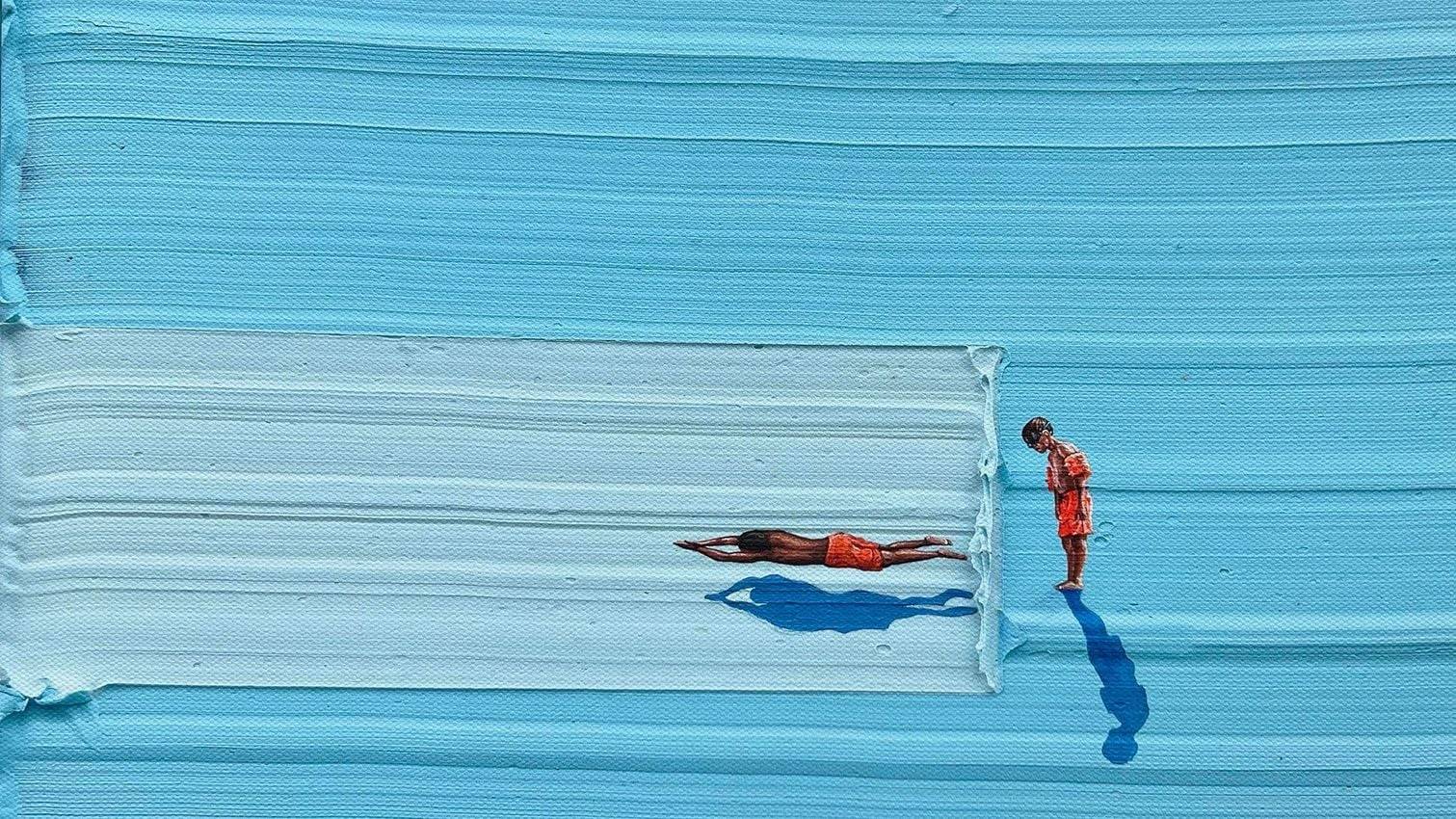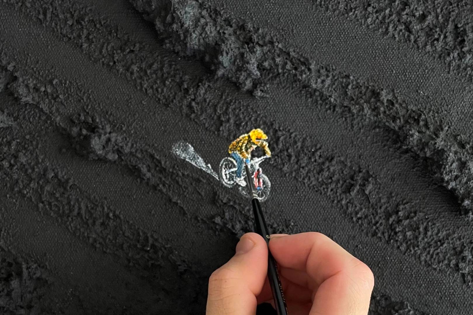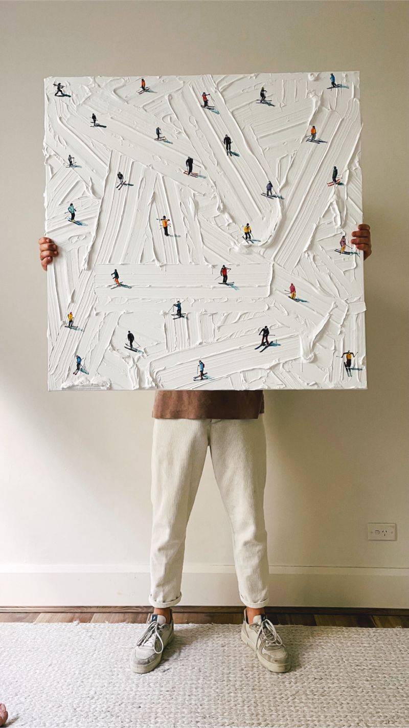 Werner Bronkhorst is celebrated for his textural paintings. Thick, sculptural surfaces paired with miniature illustrations that force you to imagine an aerial perspective. Your brain does the work. You see mountains in brushstrokes. Not necessarily macrophotography, but almost triggering that same association in our heads, associating a texture with a larger landscape. This is visual shorthand.